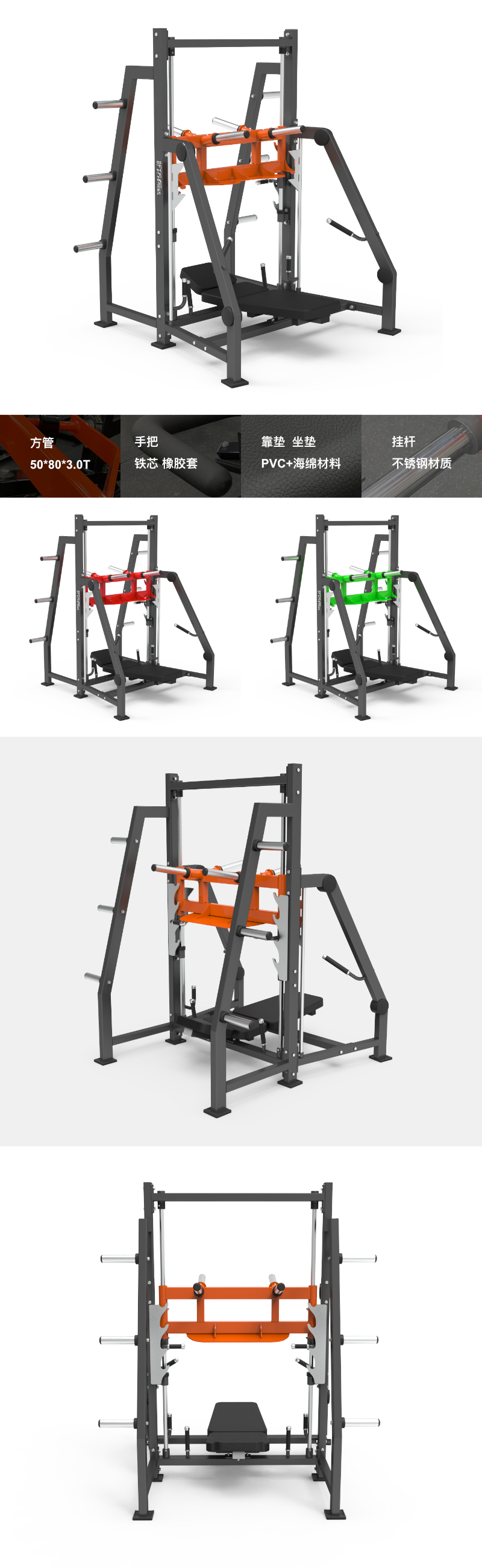 BFT-E40 BFT-E40 垂直倒蹬機 尺寸:1575x1850x2010mm 凈重:206kgs 主管:方管50*80*3.0T 手把:φ25 鐵芯+TPV橡膠套 靠墊/坐墊:PVC+海綿材料 掛桿:不銹鋼材質(zhì) 最大承重:300kg 獲取報價