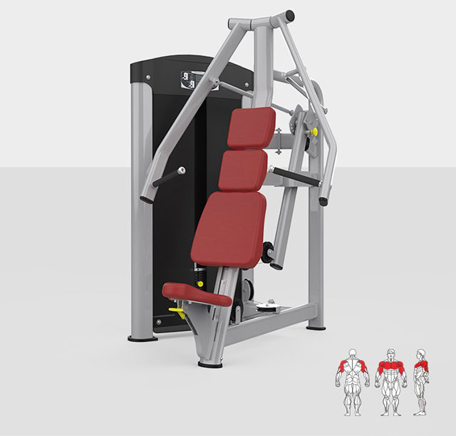肩部推舉機(jī)和坐式推胸訓(xùn)練器使用方法大致相當(dāng),無(wú)非一個(gè)往前,一個(gè)往上,開(kāi)始訓(xùn)練之前,都需要把作為調(diào)整到適合自己的位置。