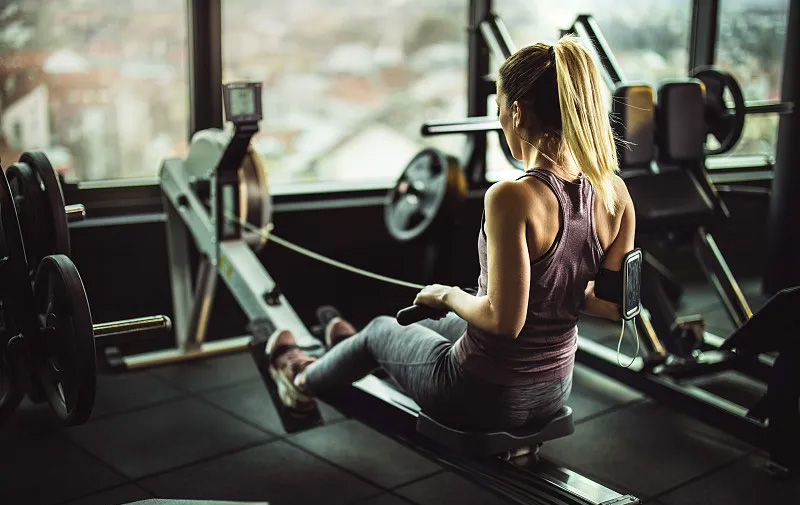 4. 劃船機:全身運動,能鍛煉到上肢、下肢和核心肌群,適合中老年人群。