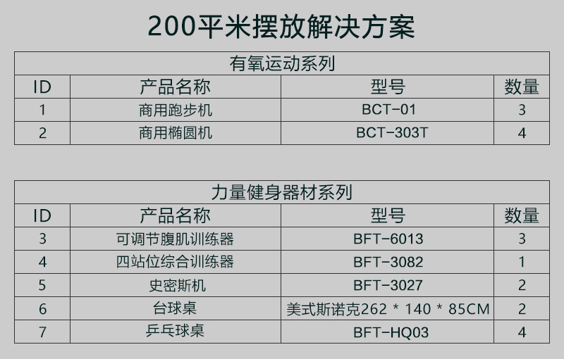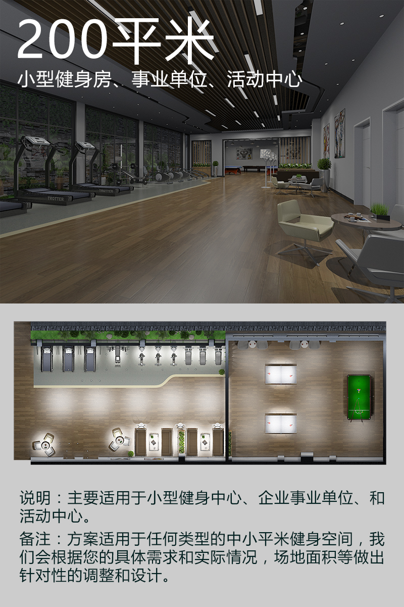 200平米健身房配置方案(企事業(yè)單位活動(dòng)中心)