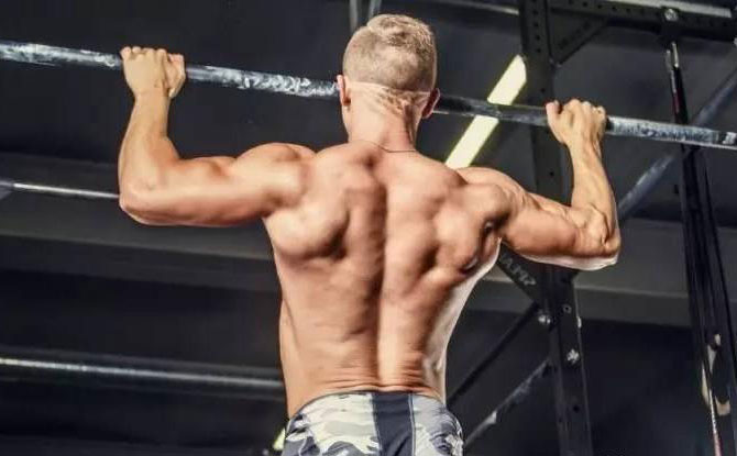 用單杠(或引體向上訓(xùn)練器)做寬握引體向上動作,能鍛煉到三角肌的后束部位。