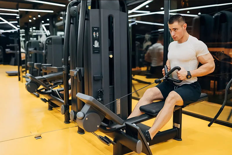 坐姿劃船器是一種模擬劃船動(dòng)作的器械,通過(guò)使用坐姿劃船器,可以有效地鍛煉到背部的斜方肌和菱形肌。
