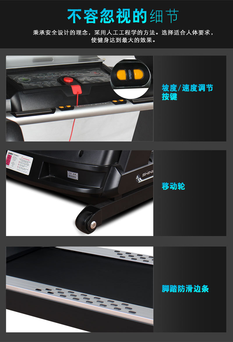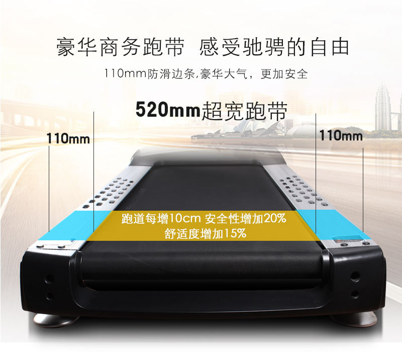 32mm厚,520mm超寬的德國品牌西格林跑帶并帶自動漲緊專利系統(tǒng) |