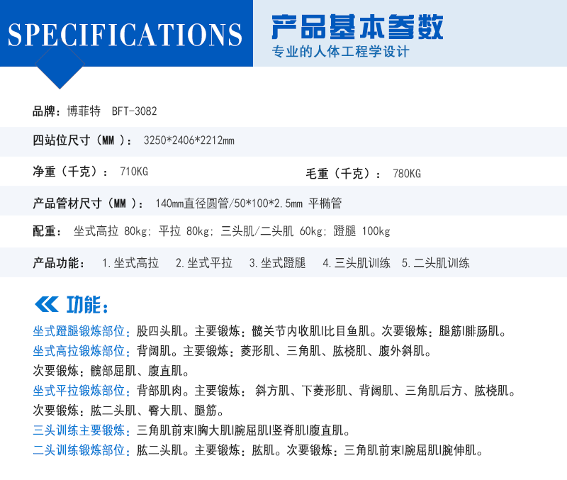 產(chǎn)品類別: 大型健身器械 適用場景: 健身器材,健身美體,運動潮流,極限挑戰(zhàn),場地游藝設(shè)備,運動戶外包類 品牌: 博菲特